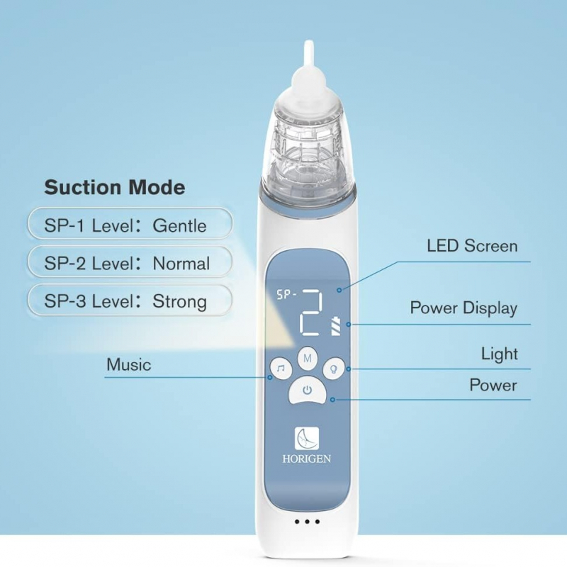 thithje e fuqishme dhe afatgjatë– Aspiratori i hundës ka tre nivele thithjeje që mund të përmbushin nevoja të ndryshme. Ai ofron thithje të fuqishme dhe të qëndrueshme, duke larguar çdo lloj mukusi nga hunda e foshnjës.