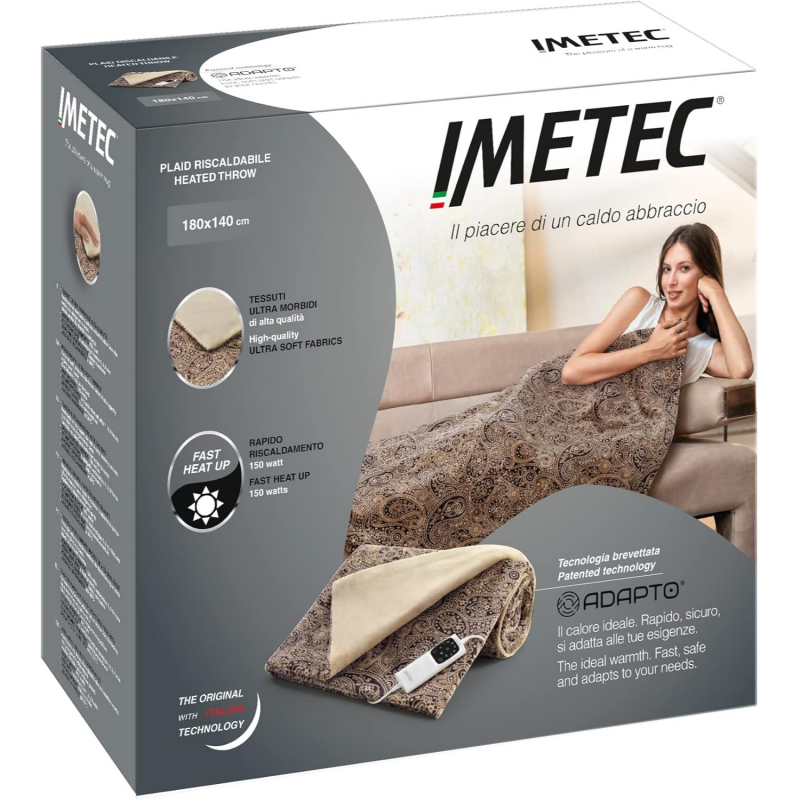 Falë teknologjisë së patentuar Adapto, me software inovativ, batanija përdor fuqinë maksimale 150 W për ngrohje ultra të shpejtë. Pasi arrihet temperatura e dëshiruar, redukton automatikisht fuqinë dhe ruan nivel konstant nxehtësie sipas temperaturës së trupit dhe ambientit, për rehati të pakrahasueshme.