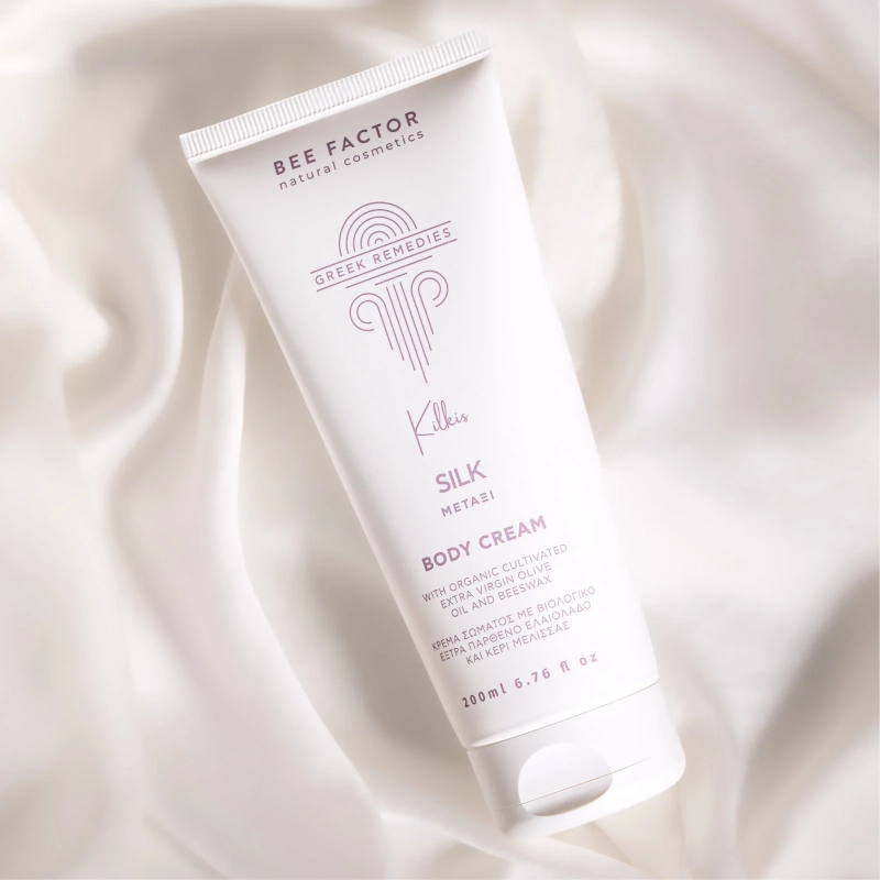 Silk Soft-Touch Body Cream bën pjesë në serinë Greek Remedies dhe shfrytëzon fuqinë e materialeve të papërpunuara greke, me ekstrakt mëndafshi nga Kilkis, Maqedoni.
