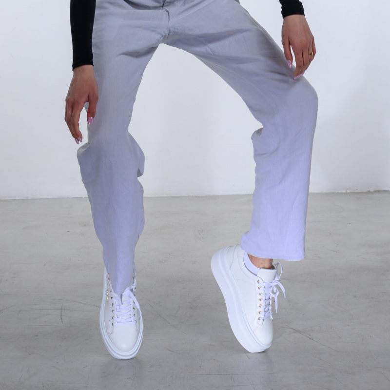 Step into pure luxury with our Bianca Venezia, designed for those who appreciate both style and comfort. Crafted from premium white leather, these sneakers boast a sleek and timeless design that adds sophistication to any look. Whether you're enjoying a sunny summer day, the blossoms of spring, or the colors of autumn, our Bianca Venezia sneakers are the perfect companion for every season. With their impeccable craftsmanship and attention to detail, these sneakers are not just a fashion statement but a promise of comfort and quality. Treat yourself to the undeniable charm of the Bianca Venezia, a must-have addition to your wardrobe for a touch of luxury in every step.