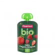 Ushqim organik për fëmijë të homogjenizuar me mollë, luleshtrydhe, mjedër Pure molle* 81.7%, pure luleshtrydhe* 17%, pure mjedre* 1.2% vitaminë C.