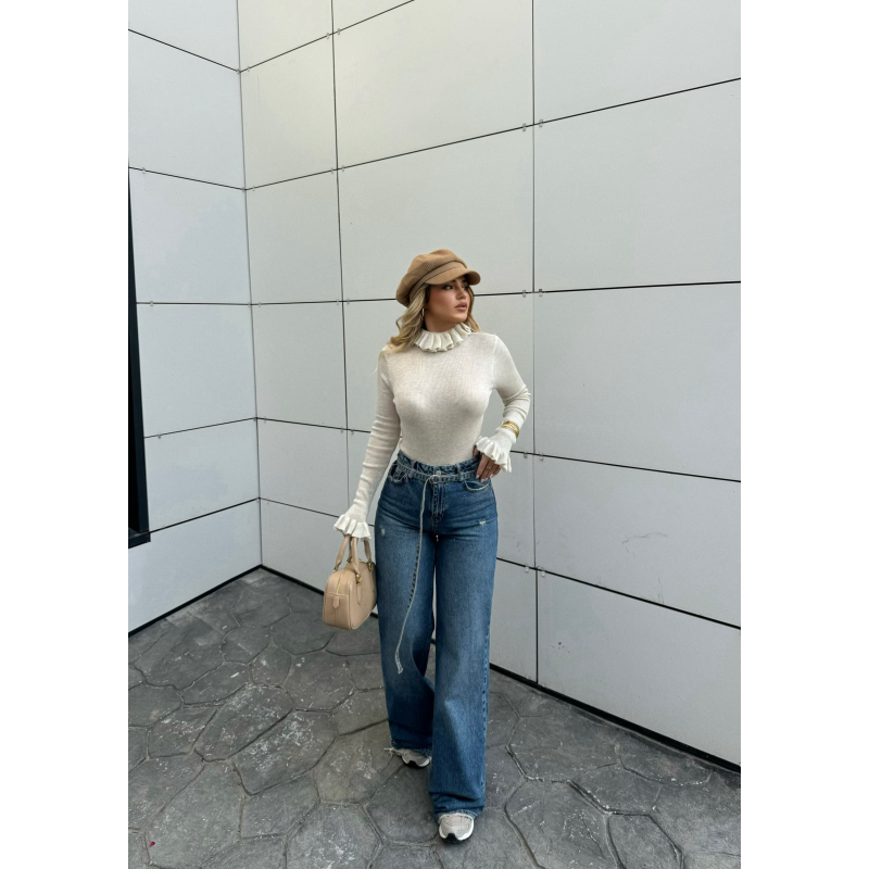 Bluza vjen ne dy ngjyra kafe dhe bezhe. Me krahe te gjate dhe pjesen e mengeve frude, gjithashtu te golfit frude. Materual i bute dhe i ngrohte.