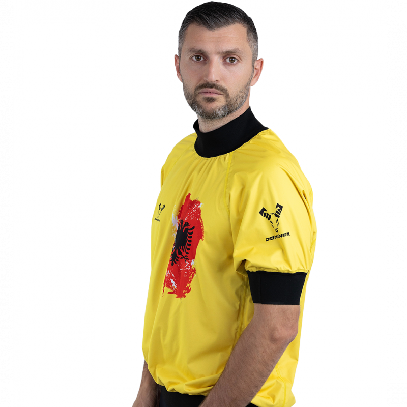 Një bluzë premium me gjysmë mëngë e krijuar për atletët. E përkryer për rafting, lundrim dhe sporte të tjera ujore me performancë të lartë. E krijuar me tekstile shume teknike e te papërshkueshme nga uji dhe era, ofron mbrojtje superiore kundër spërkatjeve, erës dhe ndryshimit të kushteve të motit. Me qepje të sheshta për të parandaluar gërvishtjet, një përshtatje të rehatshme por fleksibël dhe qepje të përforcuar për qëndrueshmëri, kjo bluzë me mëngë gjysem është thelbësore për atletët që kërkojnë performancë dhe mbrojtje në ujë.