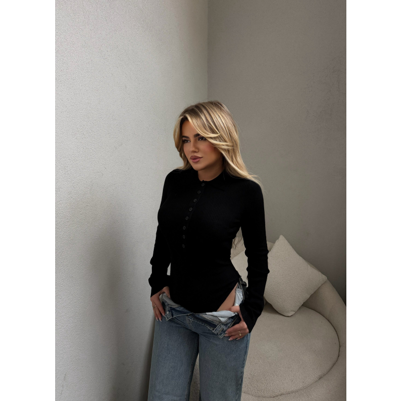 Body i thjeshte me kopsa para. Eshte i ngushte pas trupit dhe mund te kombinohet lehtesisht me cdo veshje. Ka material te plote dhe cilesi fantastike.