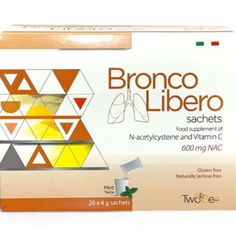 Broncolibero 600 mg N-acetilcisteine është një hollues i sekrecioneve bronkiale me veti mukolitike I përshtatshëm për gjendjet gripale. Është zgjidhja optimale për mirëfunksionimin e traktit të sipërm dhe të poshtëm respirator si dhe për forcimin e sistemit imunitar. Falë dozës së lartë të N-acetilcisteinës Broncolibero ka efekt të menjëhershëm kundër kollës me sekrecione si dhe simptomave të tjera që shoqerojnë gripin, të ftohurën dhe të patologjive të rrugeve pulmonare.