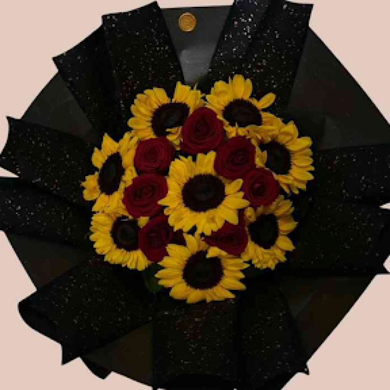 Buqetë Me Trëndafilë Dhe Lule Dielli.