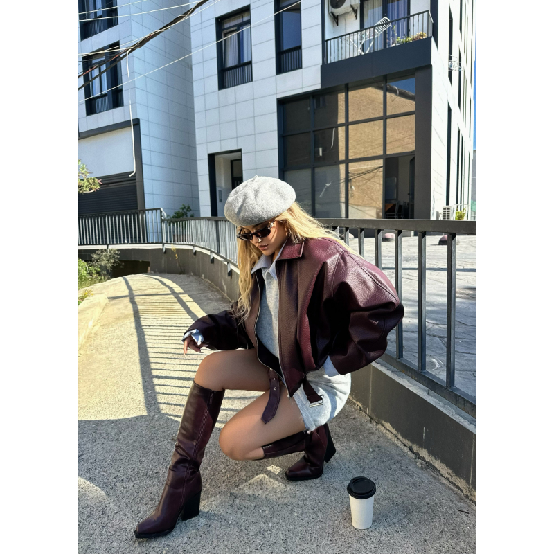 Keto çizme elegante ne ngjyre vishnje jane zgjedhja perfekte per çdo dite te ftohte.Te punuar  me material te bute meshini, ato ofrojne rehati dhe qendrueshmeri gjithe  dites. Maja e holle i jep nje prekje delikate feminiteti.