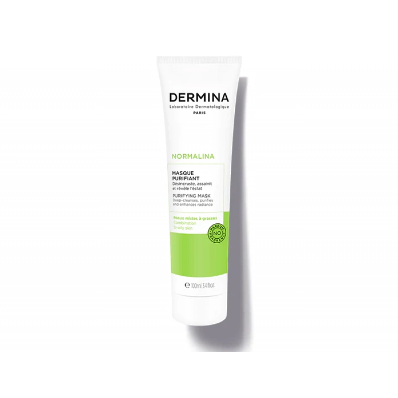 Maska Purifying DERMINA pastron poret dhe i jep nje pamje rinore lekures. Lidhja e sulfatit të zinkut dhe ekstraktit të algave të detit ribalancon sekretimin e sebumit në sipërfaqen e lëkurës. Efekti i menjëhershëm astringent i Kompleksit Fito-aktiv shtrëngon poret. Së fundi, kaolini thith sebumin dhe papastërtitë duke sjellë kështu shkëlqimin natyral te lekures. Lëkura është e pastruar, rrezatuese dhe e butë.