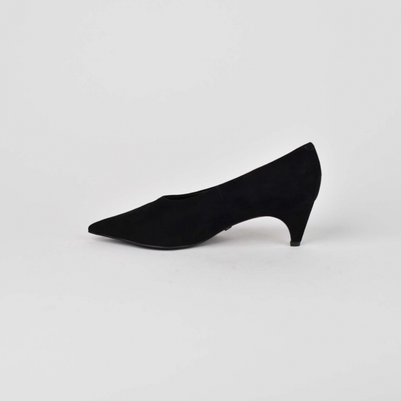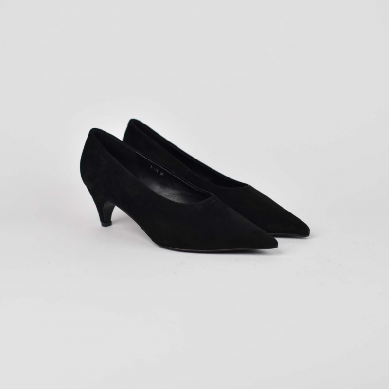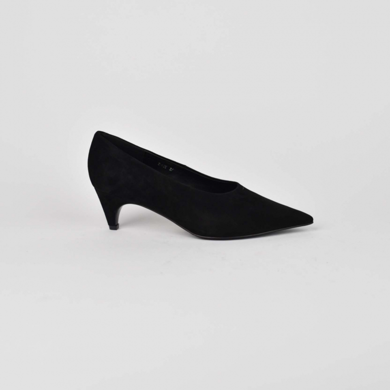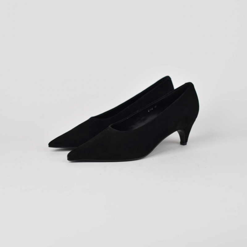 Kepuce për femra Materiali: Kamosh Ngjyra: e zeze Takë e holle Takë 5 cm Logo e printuar Di Fratelli në shtrojë