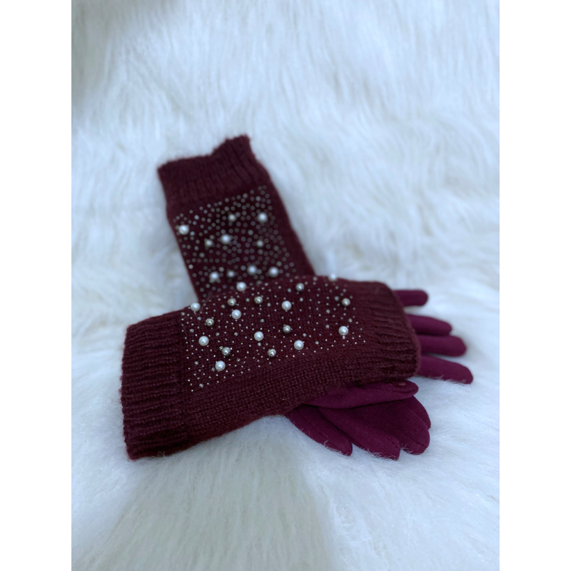Dorashka dy pjesshe ne ngjyren vishnje. Material i plote dhe i ngrohte. Pjesa e e parme eshte e dekoruar me perla dhe gure.