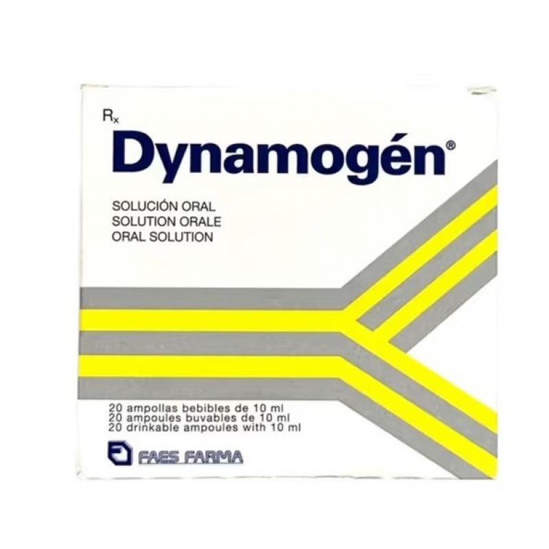 Dynamogen x20 ampula është suplement ushqyes në formë ampulash orale që ndihmon në: *Stimulimin e oreksit *Rritjen e energjisë *Përmirësimin e gjendjes së përgjithshme fizike dhe mendore Përdoret për: mungesë oreksi, kequshqyerje, lodhje, rritje të ngadaltë tek fëmijët. Përbërës aktivë: * Cyproheptadine (stimuluese oreksi) * Arginine Aspartate (rrit energjinë) Dozimi: * Fëmijë: 1 ampulë, 2 herë/ditë * Të rritur: deri në 3 ampula/ditë *Kujdes:* Mund të shkaktojë përgjumje. Jo për fëmijë nën 2 vjeç.