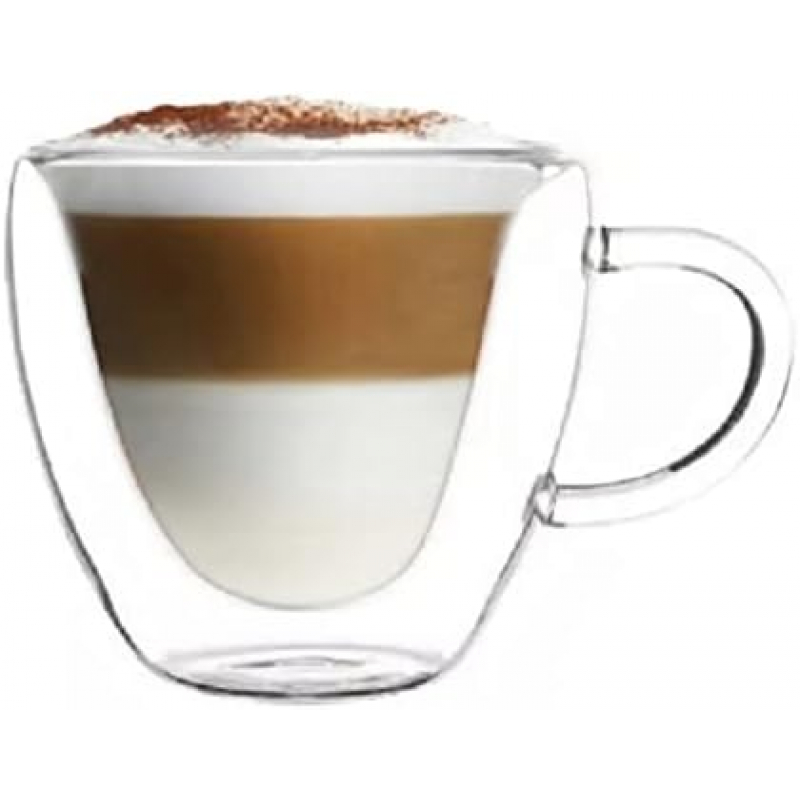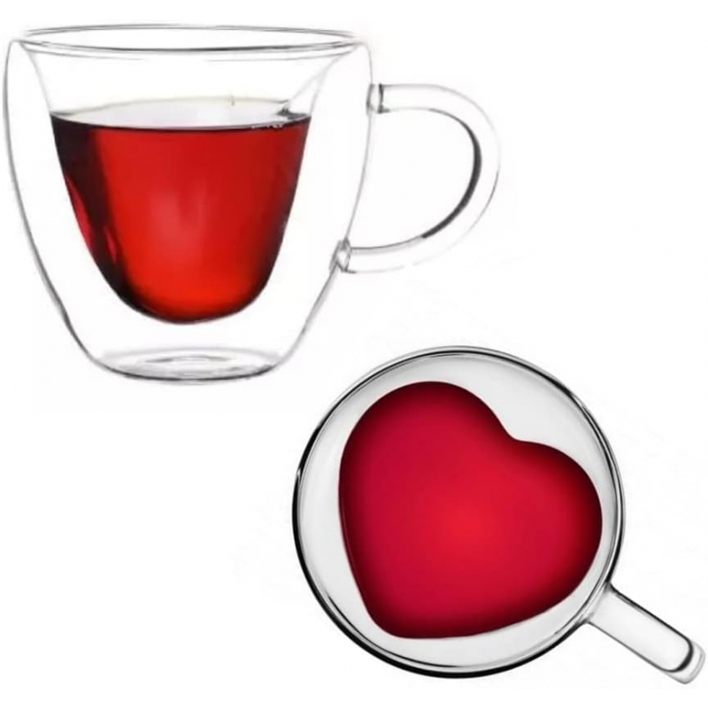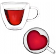 Filxhan me 2 shtresa qelq borosilikat, i cili mundëson ruajtjen e temperaturës së pijes për një kohë të gjatë. Filxhani në pjesën e brendshme, vjen në formën e zemrës.