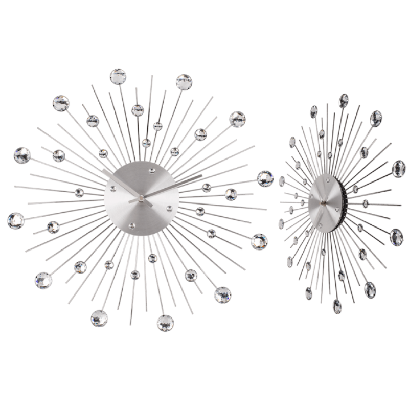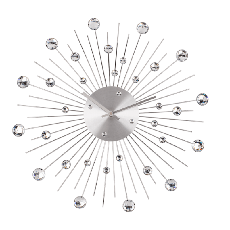 Një orë e pastër me kristale diamanti. Numrat e lehtë për t'u lexuar.