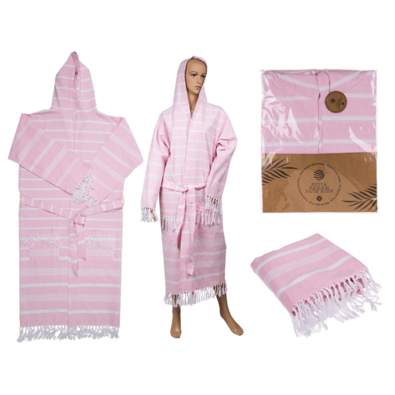 Peshqir fouta me ngjyrë rozë/të bardhë , masaM, 80% pambuk dhe 20% poliester.
