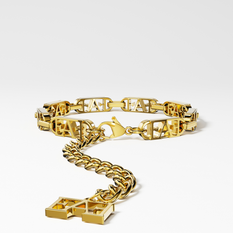 Byzylyku Emblem përfaqëson elegancën moderne me një dizajn të fortë, por të rafinuar. Dallohet nga struktura unike e zinxhirit, shkrimi i logos Enzo Attini dhe forma e rregullueshme, duke krijuar një pamje të pastër, elegante dhe me identitet të fortë. Zinxhiri i zgjatur me varësen emblemë i shton lëvizje dhe karakter, duke e kthyer byzylykun në një aksesor që bie në sy.