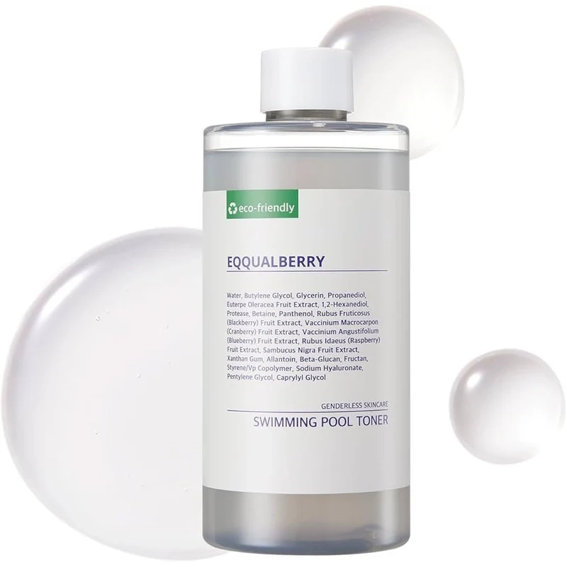Eqqualberry Toner – Swimming Pool Toner është një tonik hidratues me pH të ulët, i krijuar për të ofruar hidratim intensiv, eksfolim të butë dhe përmirësim të teksturës së lëkurës pa shkaktuar irritim. Një nga veçoritë kryesore të këtij eqqualberry toner është përmbajtja e 8 llojeve të acidit hialuronik të grumbulluar, të cilët punojnë në shtresa të ndryshme të lëkurës.