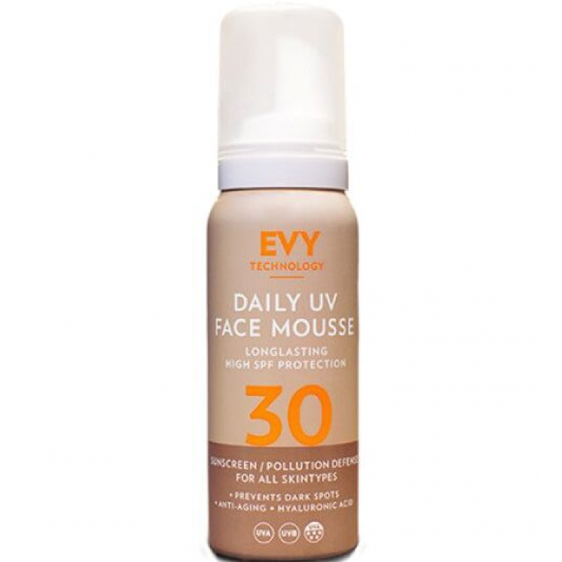Mbrojtje e përditshme kundër dëmtimit të diellit dhe ndotësve të jashtëm. Një mousse për fytyrën që forcon barrierën mbrojtëse të lëkurës dhe parandalon shenjat e hershme të plakjes. Produkti është i pasuruar me vitamina C dhe E, acid hialuronik dhe kolagjen, si dhe me disa përbërës ushqyes që ndihmojnë në parandalimin e hiperpigmentimit dhe dëmtimeve nga dielli. EVY është i lehtë dhe nuk lë një shtresë të bardhë ose nuk bllokon poret. Është ideal për t'u përdorur si primer nën make-up pasi mbron edhe nga acarimi i lëkurës i shkaktuar nga kozmetika. Funksionon mirë vetë, ose në krye të produkteve të kujdesit të lëkurës me peshë të lehtë. EVY është i përshtatshëm për të gjitha llojet e lëkurës dhe mund të përdoret në lëkurën e kokës dhe mjekrën e hollë. Formula e butë, e testuar nga alergjia është gjithashtu e përshtatshme për njerëzit me ekzemë ose akne. Nuk bllokon poret dhe nuk lë mbetje të bardha. Pa konservues dhe parfum. Nuk ka nanogrimca.