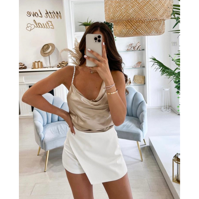 Fundpantallona te bardha. Jane me pale ne pjesen e perparme. Material i plote shume i mire. Mberthimi behet me zinxhir ne pjesen anesore.