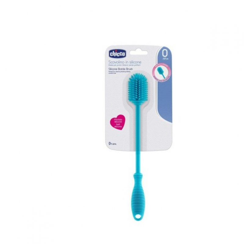 Furça silikoni Chicco 0% BPA ju lejon të pastroni shpejt dhe me lehtësi shishet dhe aksesorët e foshnjës, është ideale për pastrimin e të gjitha produkteve për fëmijë dhe shumë më tepër. Është prej silikoni, i përshtatshëm për përdorim ushqimor dhe sterilizim, është higjienik, pa erë dhe i sigurt për çdo material (xham, plastikë, alumin, qeramikë dhe më shumë). Fijet e silikonit pastrojnë çdo sipërfaqe pa gërvishtje. I përshtatshëm për t'u larë në makinë larëse enësh, gjithashtu ka një dorezë të rehatshme që nuk rrëshqet.