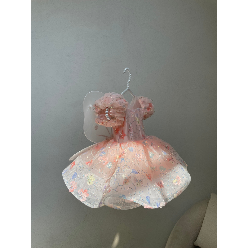 Fustan i fryre me detaje me lule dhe me krahe si flutur ne pjesen mbrapa. Ka material te plote dhe cilesi fantastike.