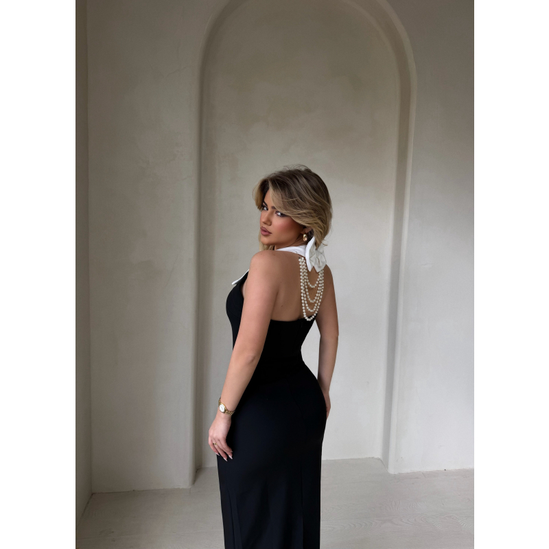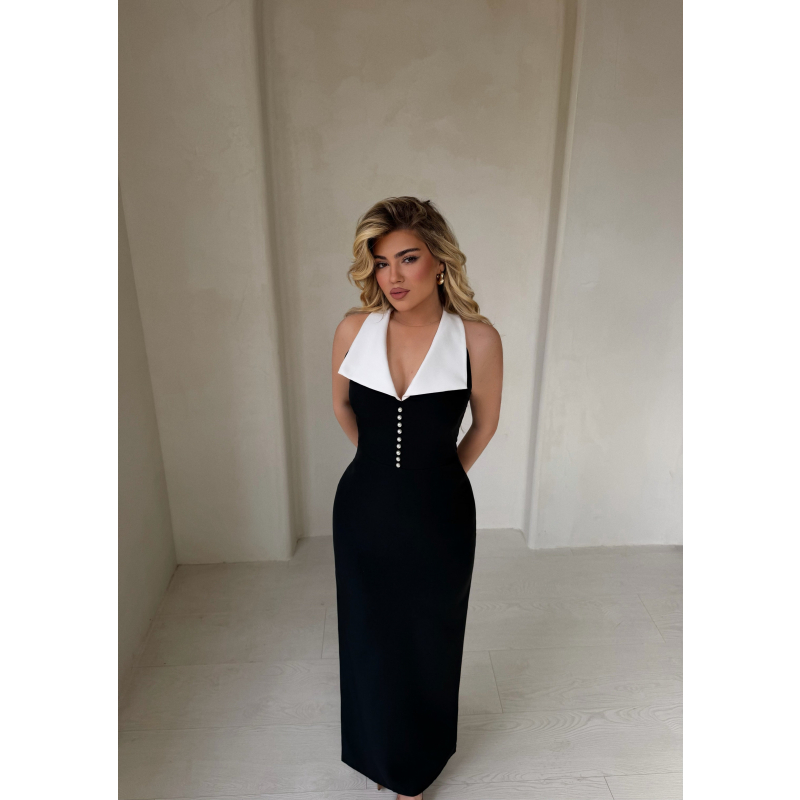 Fustan klasik dhe shume chic me kontrast bardhe e zi. Dizajn elegant qe thekson linjat e trupit, ideal per mbremje apo raste speciale.