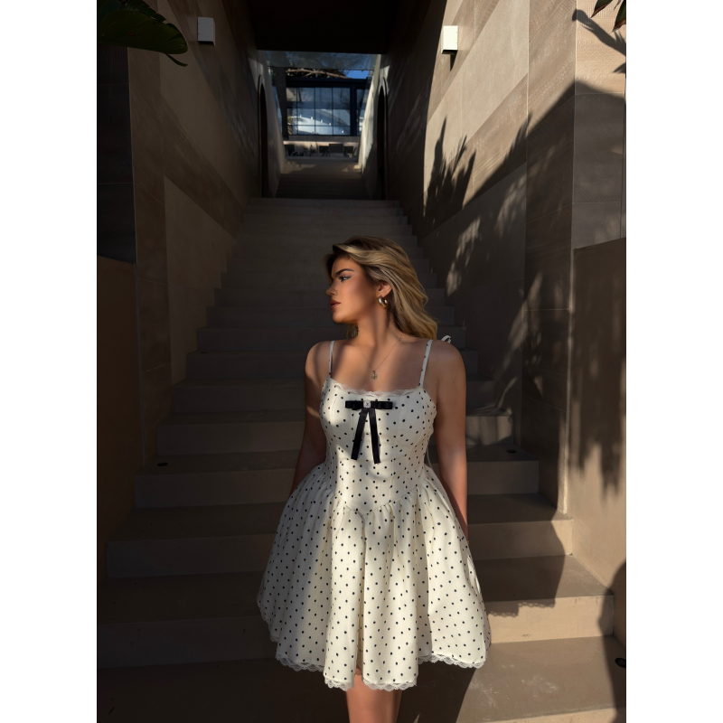 Fustan i shkurter me pika dhe rripa, shume i lehte dhe veror. Dizajn i thjeshte por plot stil, perfekt per dite te ngrohta dhe dalje casual.