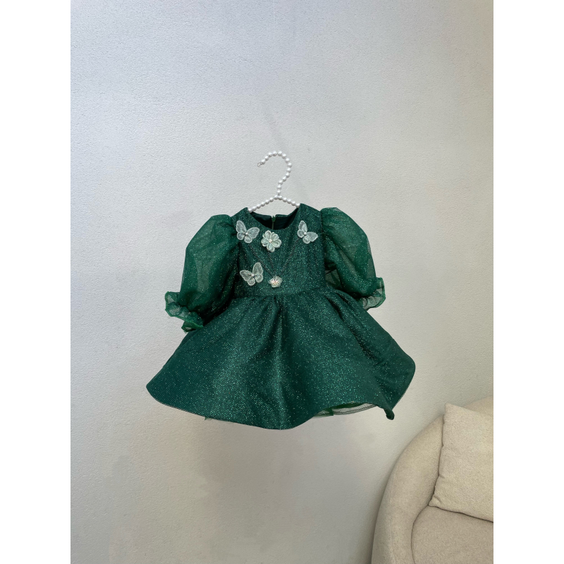 Fustan ne ngjyren jeshile me xixa. Eshte i fryre dhe ka fjongo ne pjesen mbrapa. Detaje te vecanta dhe cilesi fantastike. Teper komod dhe stil.
