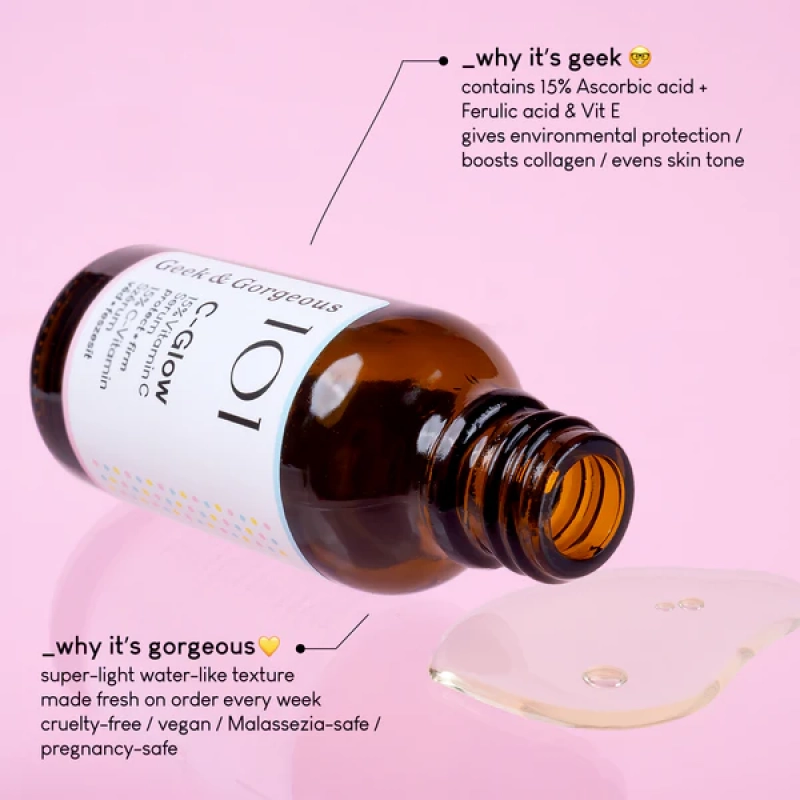 Disavantazhi i vetëm i vitaminës C të pastër është jo-stabiliteti i saj dhe është shumë e vështirë për të sjell formula efikase dhe elegante me të. Formulimi nga Geek&Gorgeous përdor një pH të ulët dhe antioksidant të tjerë për të ndihmuar në stabilitetin e vitaminës C, por edhe kështu vitamina C mund të stabilizohet vetëm për disa muaj.