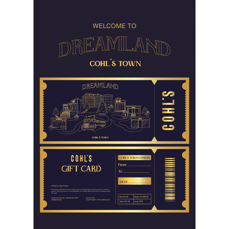 Step inside COHL'S Town, where every detail feels magical, glowing lights, cozy streets, and festive charm around every corner. This season, give the gift of wonder with our golden ticket gift card.