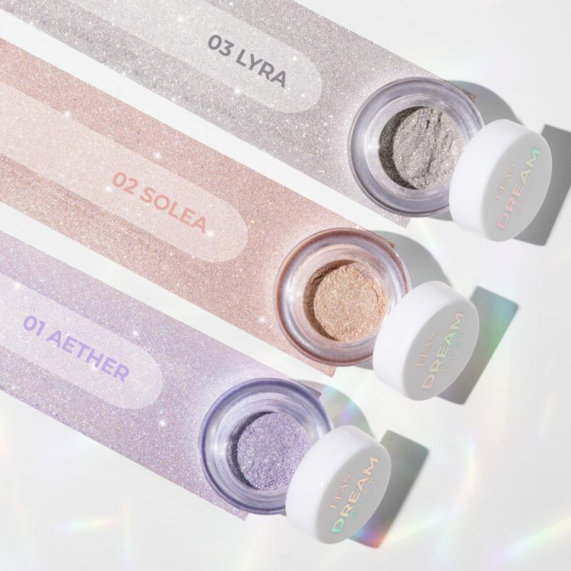 Hean Dream Dust Loose Pigment është eyeshadow me xixa multidimensionale që ofron shkëlqim të menjëhershëm dhe theksim të syve. Pigmenti lejon aplikim të saktë dhe efekt intensiv. Mund të përdoret i thatë për pamje të lehtë por të dukshme ose i njomur për shkëlqim më dramatik. Ai mund të aplikohet solo për të dhënë shkëlqim ose si mbi eyeshadow. Gjithashtu, mund të përdoret në qoshe të syrit për një pamje tërheqëse dhe kreative. Shade-t përfshijnë Aether blu-violet, hipnotike Solea- e ngrohtë, e artë dheLyra është një nuancë argjendi me nuancë perle, ideale për pamje elegante dhe delikate. Pigmenti ka qëndrueshmëri të lartë dhe ngjitet lehtë në lëkurë pa krijuar rrudha ose grumbuj.