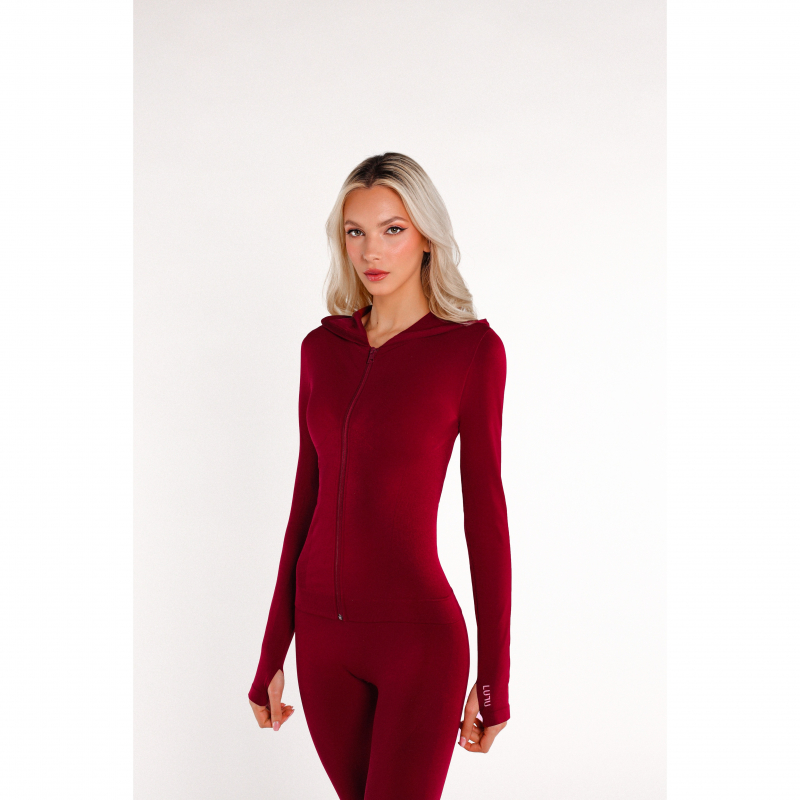 The seamless with the most flattering fit with a waist super defined and a hood. Smooth as butter and perfect for every activity. It’s designed for your comfort and easy go-to style with everything top, especially our cherry red set. Fits true to size.