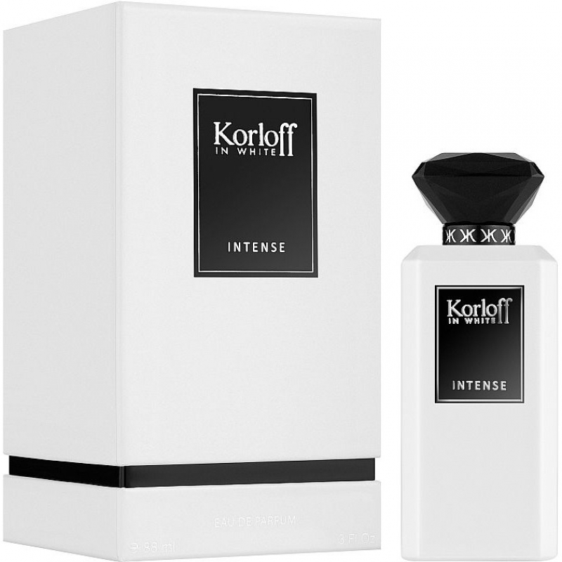 Korloff In White Intense nga Korloff Paris është një aromë mashkullore elegante dhe moderne. Vjen në format 88 ML. Ajo hapet me freskinë energjike të bergamotës, kardamomit dhe gjetheve të vjollcës, duke krijuar një fillim të rafinuar dhe tërheqës.
