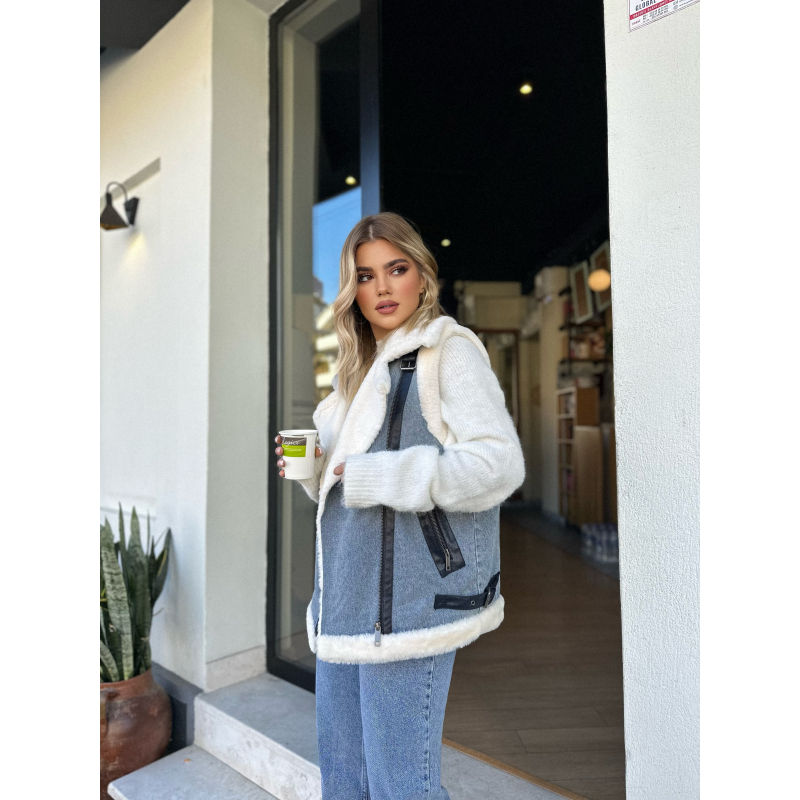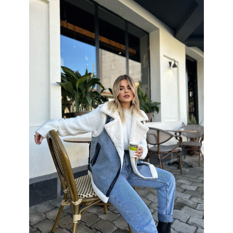 Jelek me pellush ne pjesen e brendshme dhe xhins nga jasht. Mbyllja behet me zinxhir ne pjesen e perparme. Ka gjetesi normale.