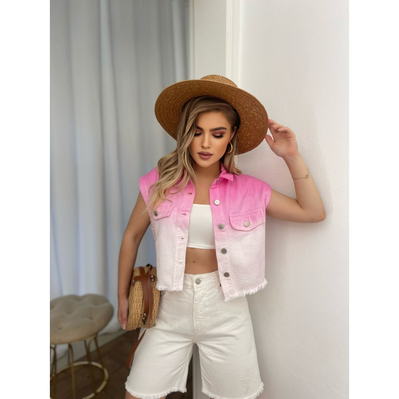 Jelek xhins me dy ngjyra. Me jake me kapak mberthimi behet me kopsa ne pjesen e perparme.