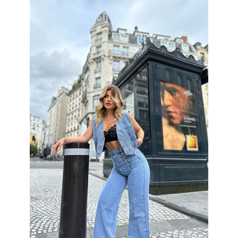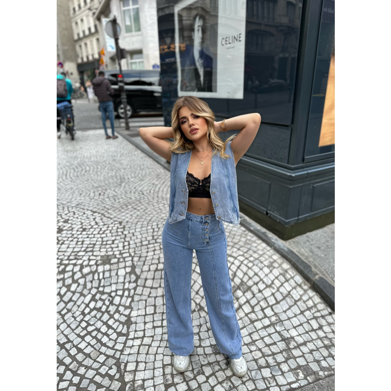 Jelek xhins me kopsa para. Ka material te plote dhe cilesi fantastike. Kombinohet lehtesisht me cdo veshje.