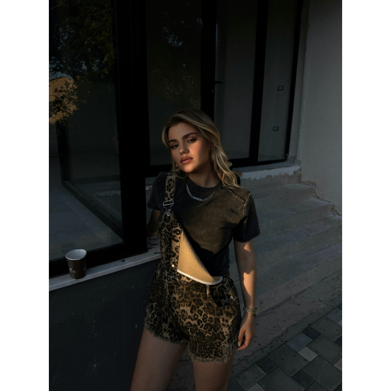 Jumpsuit i shkurter me dizenjo leopard.Super stil dhe komod.