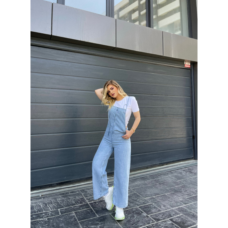 Jumpsuit xhins me rripa. Ka material te plote dhe cilesi fantastike. Vjen me xhinse te gjata te gjera.