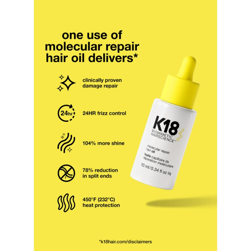 *Këshillë - Nëse përdorni maskën e riparimit molekular K18, aplikoni maskën së pari në flokë të pastër dhe të lagur, pastaj prisni 4 minuta. Aplikoni vajin e flokëve për riparim molekular dhe prisni 4 minuta për rezultate maksimale forcimi.