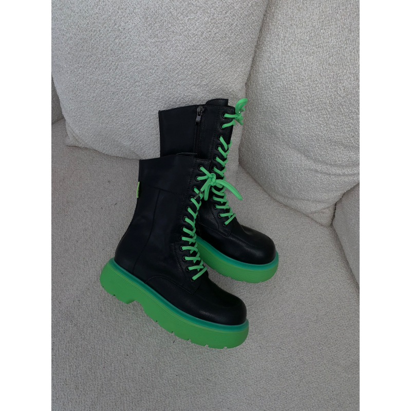 Gjysem cizme lekure me lidhse para. Me detaje me fosfor jeshil. Shume figurante dhe lekure cilesore. Mberthimi behet me  zinxhir ne pjesen anesore dhe lidhse ne pjesen e perparme. Kane taban ne lartesi mesatare. Jane teper komde dhe figurante.
