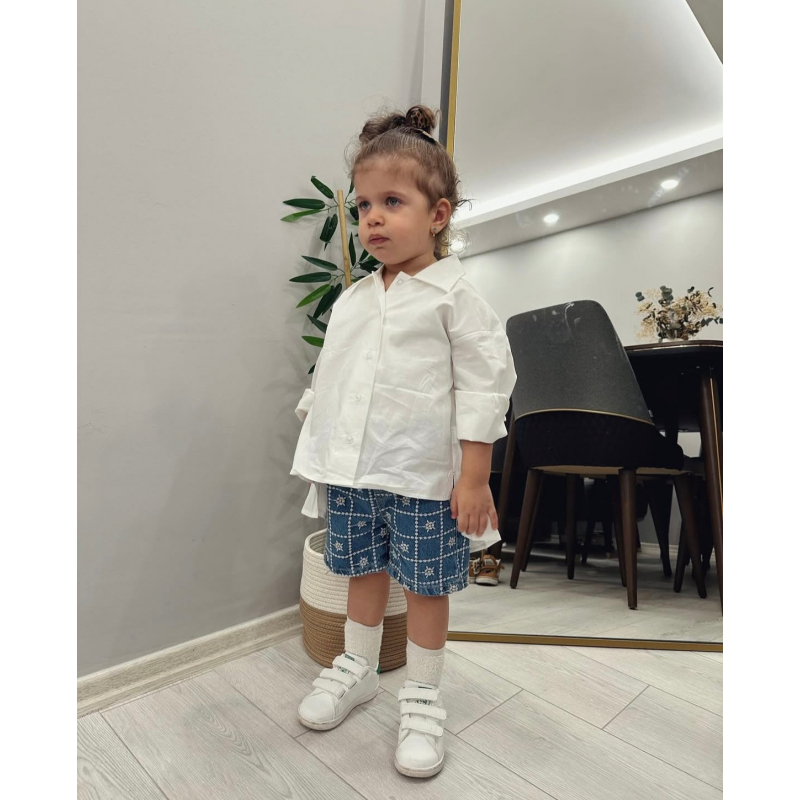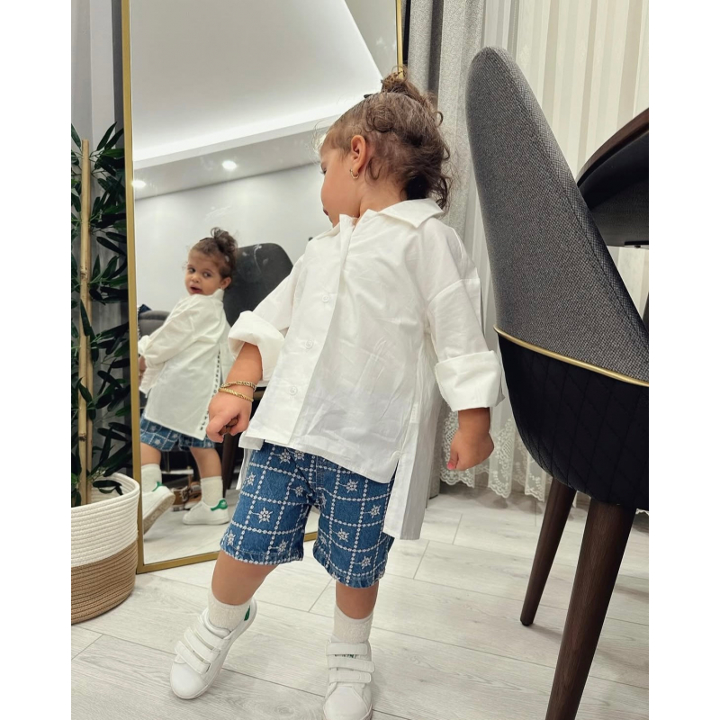 Kemishe me kopsa para dhe e hapur ne pjesen mbrapa. Vjen e shkurter para dhe pak e hapur mbrapa. Ka material te plote dhe eshte lehtesisht e kombinueshme.
