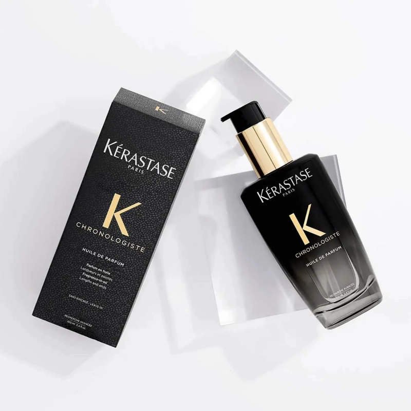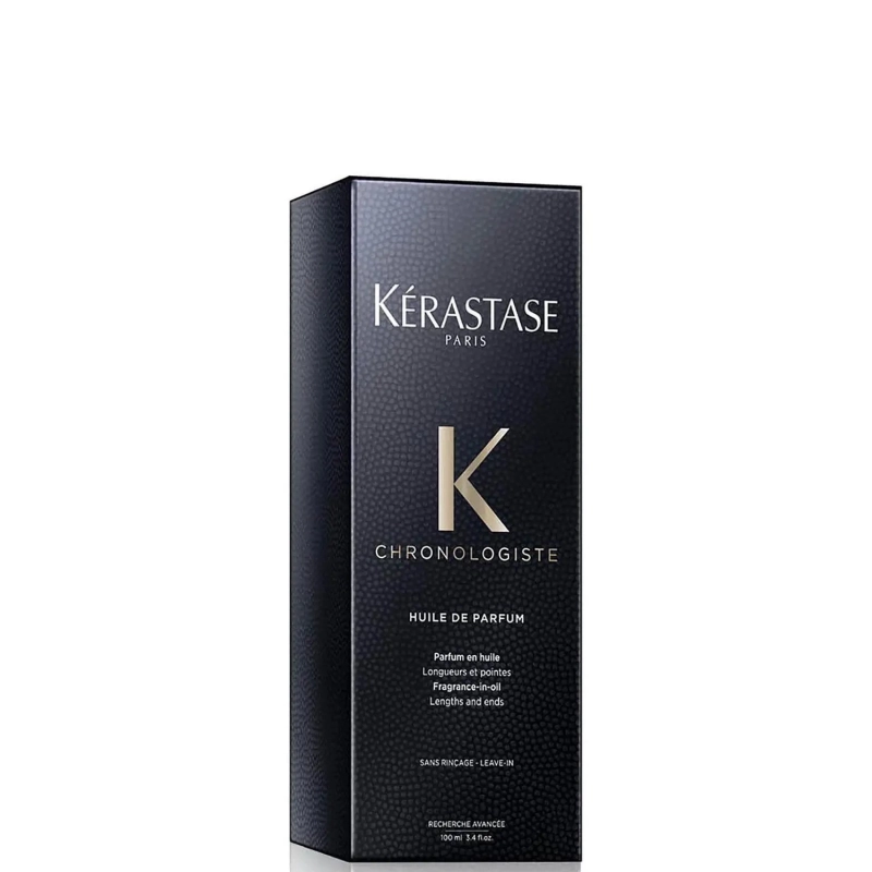 Kerastase Chronologiste Huile De Parfum Fragrance-In-Oil është një vaj aromatik shumëfunksional për flokë shumë i koncentruar i krijuar për t'u përdorur para ose pas stilimit për një përfundim të butë dhe me shkëlqim. Ai përmban një kombinim të jashtëzakonshëm të aromes fisnike të çajit të trëndafilit, drurëve të lehtë, myshkut dhe ekstraktit të mirrës.