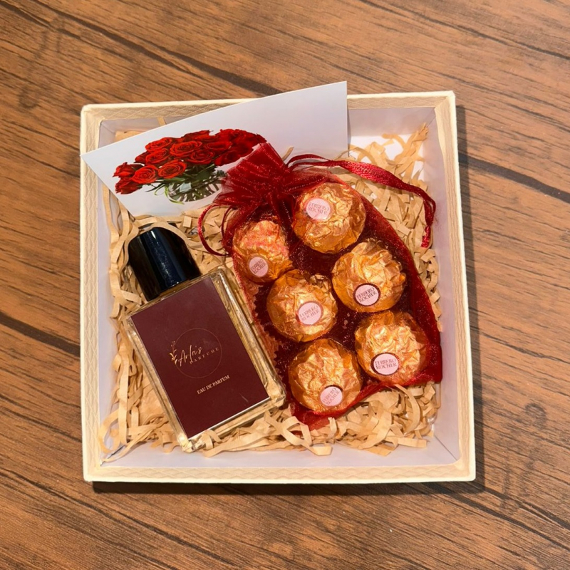 Kompozim ne kuti me parfum dhe cokollata