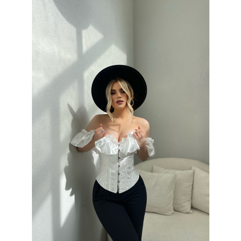Korse me dantelle. Vjen bust dhe me supe jashte. Mberthimi behet me ane te kapseve ne pjesen perpara. Ka material te plote dhe cilesi fantastike. Kombinohet lehtesisht me cdo veshje.