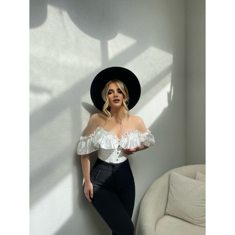Korse me dantelle. Vjen bust dhe me supe jashte. Mberthimi behet me ane te kapseve ne pjesen perpara. Ka material te plote dhe cilesi fantastike. Kombinohet lehtesisht me cdo veshje.