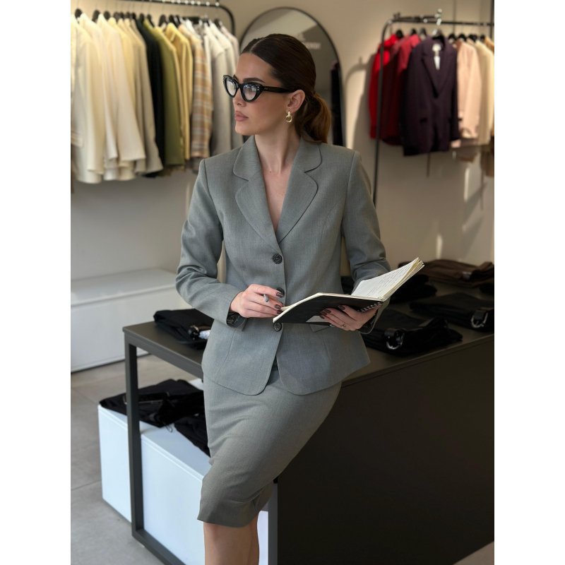 Kostum me xhakete dhe fund. Prerje klasike pas trupit. Materiali polyester me pak elasticitet.