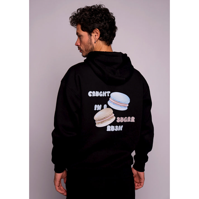 Lovers Delight Hoodie – Crafted from premium-quality fabric, this hoodie offers a soft, breathable feel with a relaxed yet structured fit. Designed for durability and comfort, it features ribbed cuffs, a spacious kangaroo pocket, and detailed Valentine’s-inspired graphics, including chocolate, cotton candy, and macarons. A versatile piece that blends style with everyday functionality.