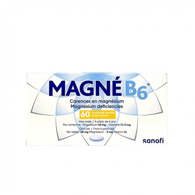 Magne B6 x60 tablet është një suplement ushqimor që përmban magnez dhe vitaminë B6. Ai ndihmon në mbështetjen e funksionit të sistemit nervor, ul lodhjen dhe përmirëson metabolizmin e energjisë në trup. Magnezi është i rëndësishëm për kontraktimin e muskujve dhe shëndetin e zemrës, ndërsa vitamina B6 ndihmon në absorbimin dhe përdorimin e magnezit nga organizmi. Ky produkt përdoret shpesh për të parandaluar ose trajtuar mungesën e magnezit në trup.