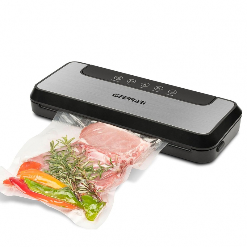 Fresco Vac është një makinë për vakumim e fortë dhe shumë funksionale, ideale për ruajtjen e ushqimeve në mënyrë të sigurt dhe afatgjatë. Me presion aspirimi deri në -700 mBar (70 kPa) dhe kapacitet aspirimi 8 L/min, ajo mbyll hermetikisht qeset në pak sekonda, duke e mbajtur ushqimin të freskët deri në 5 herë më gjatë.