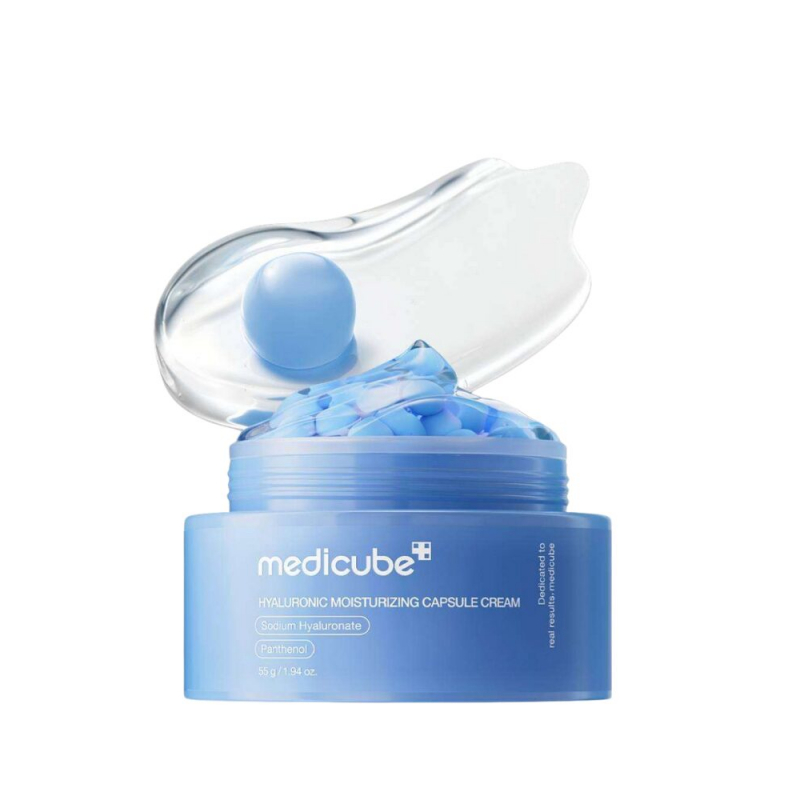 Hyaluronic Moisturizing Capsule Cream nga Medicube është një krem modern i dizajnuar për të rritur hidratimin, për të forcuar barrierën e lëkurës dhe për të ofruar një pamje të shëndetshme me shkëlqim. Ky Moisturizing Cream e rikthen butësinë dhe elasticitetin e lëkurës, duke siguruar hidratim të thellë gjatë gjithë ditës. Formula përfshin kapsula të veçanta që përmbajnë 99% acid hialuronik dhe pantenol 5 000 ppm, të cilat gjatë aplikimit shpërbëhen dhe lëshojnë përbërës aktivë në lëkurë dhe bazë gel‑kremoze me ceramide, niacinamide, alantoinë dhe betainë, që ndihmojnë në përthithjen e lëngut, forcimin e barrierës së lëkurës dhe përmirësimin e teksturës.
