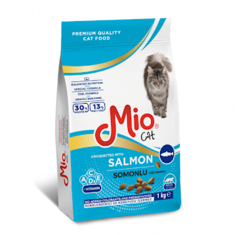 Ushqim për mace të rritura me salmon. Përmban vitamina A, C, D3, E. 1kg/900 lekë.